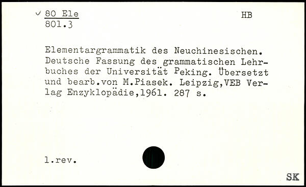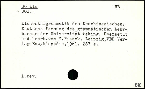 Elementargrammatik des Neuchinesischen. Deutsche Fassung des grammatischen Lehrbuches der Universität Feking. Übersetzt und bearb.von M.Piasek.