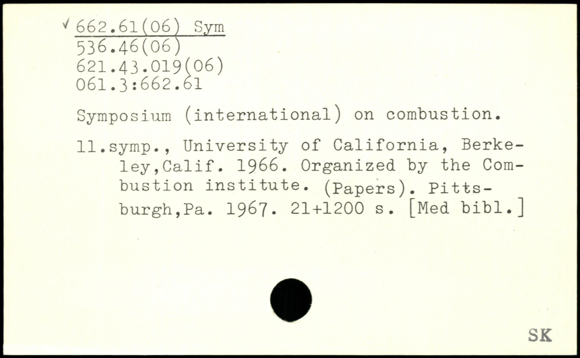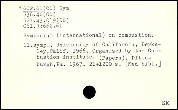 Symposium (international) on combustion. ll.symp., University of California, Berkeley,Calif. 1966. Organized by the Combustion institute, (papers). Pittsburgh,Pa. 1967.