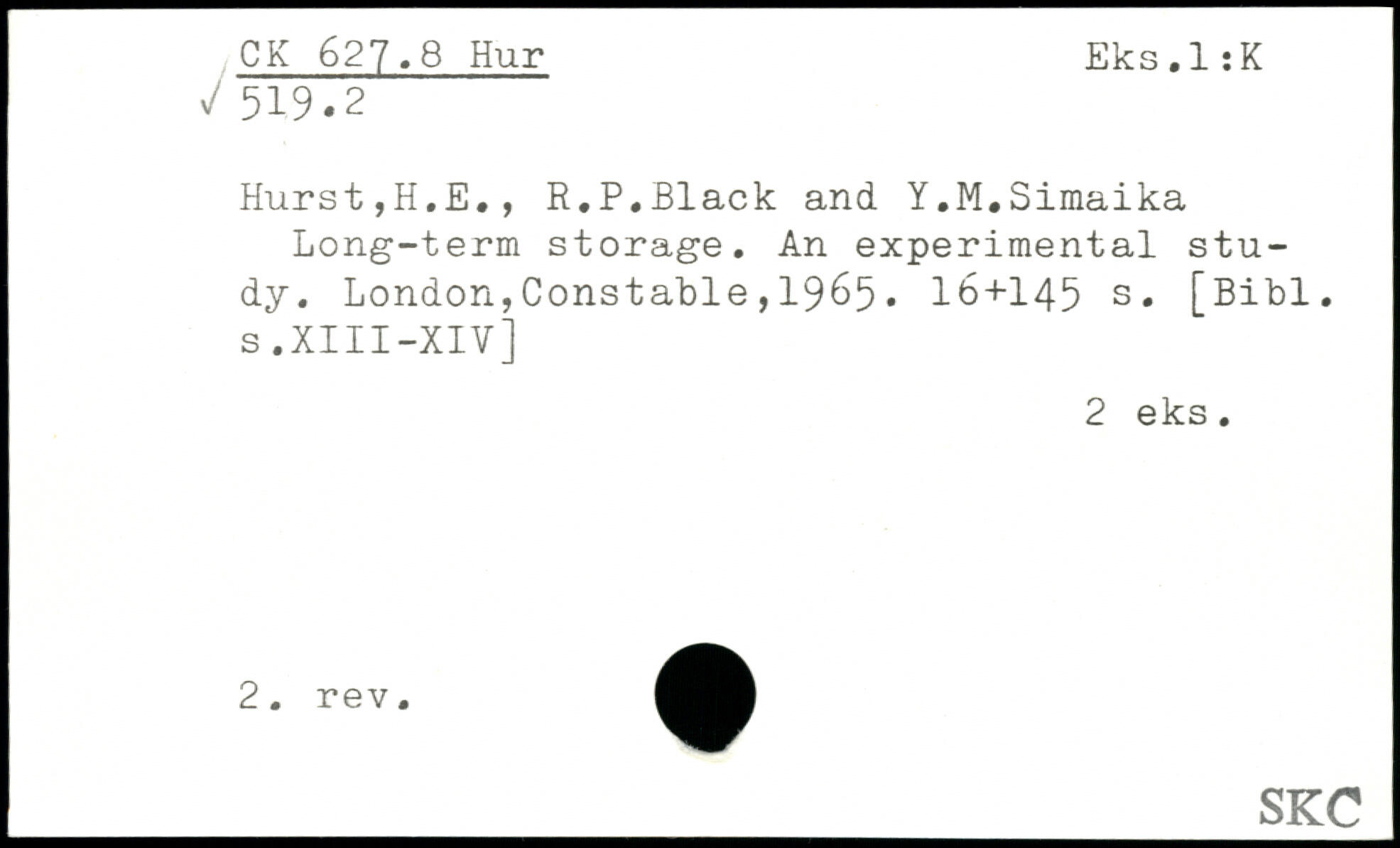Hurst,H.E., R.P.Black and Y.M.Simaika Long-term storage. An experimental study.