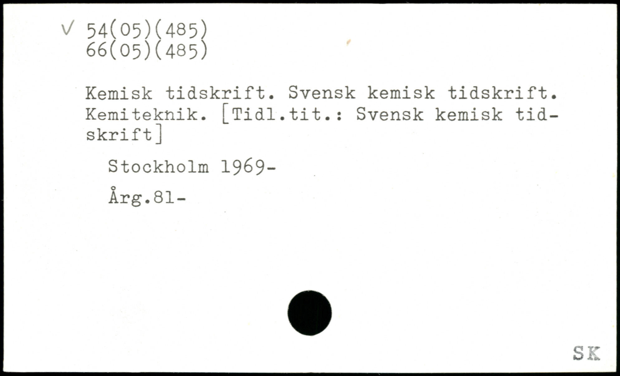 Kemisk tidskrift. Svensk kemisk tidskrift. Kemiteknik. [Tidl.tit.: Svensk kemisk tidskrift] Stockholm 19&9- Årg.81-