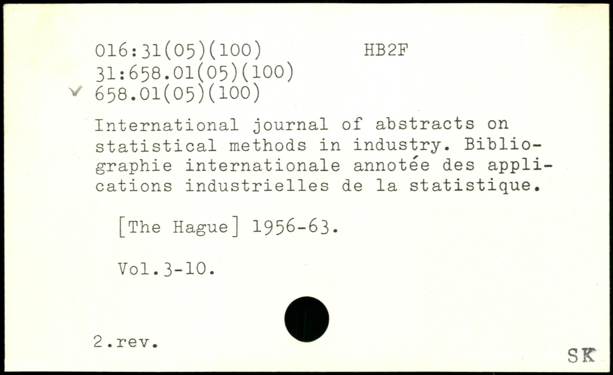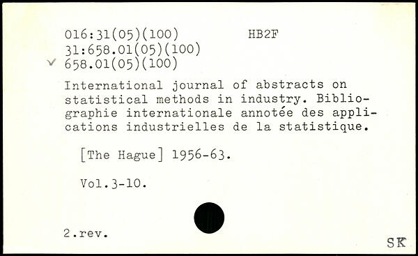 International journal of abstracts on statistical methods in industry. Bibliographie internationale annotée des applications industrielles de la statistique.