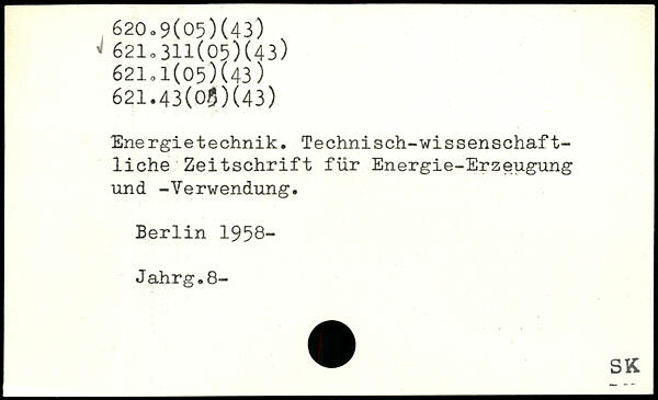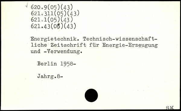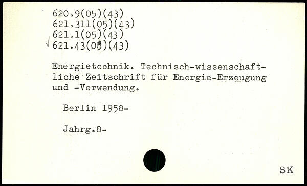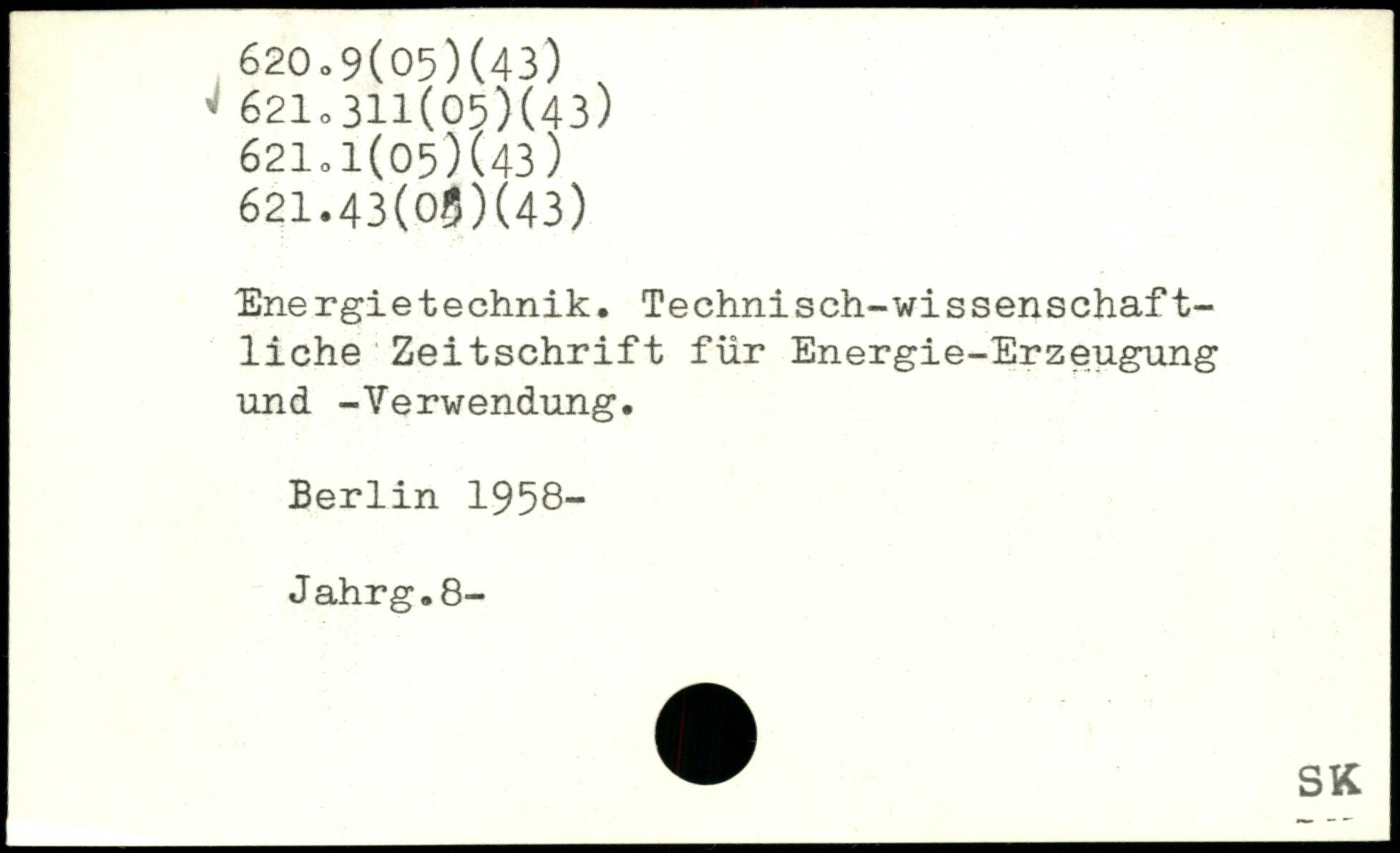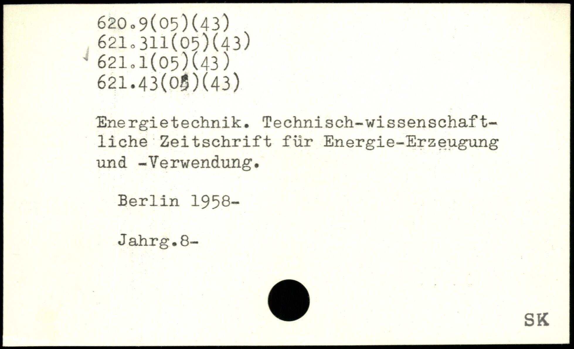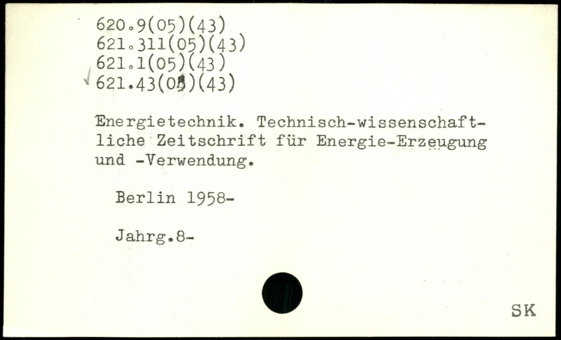 Energietechnik. Technisch-wissenschaftliche Zeitschrift für Energie-Erzeugung und -Verwendung.