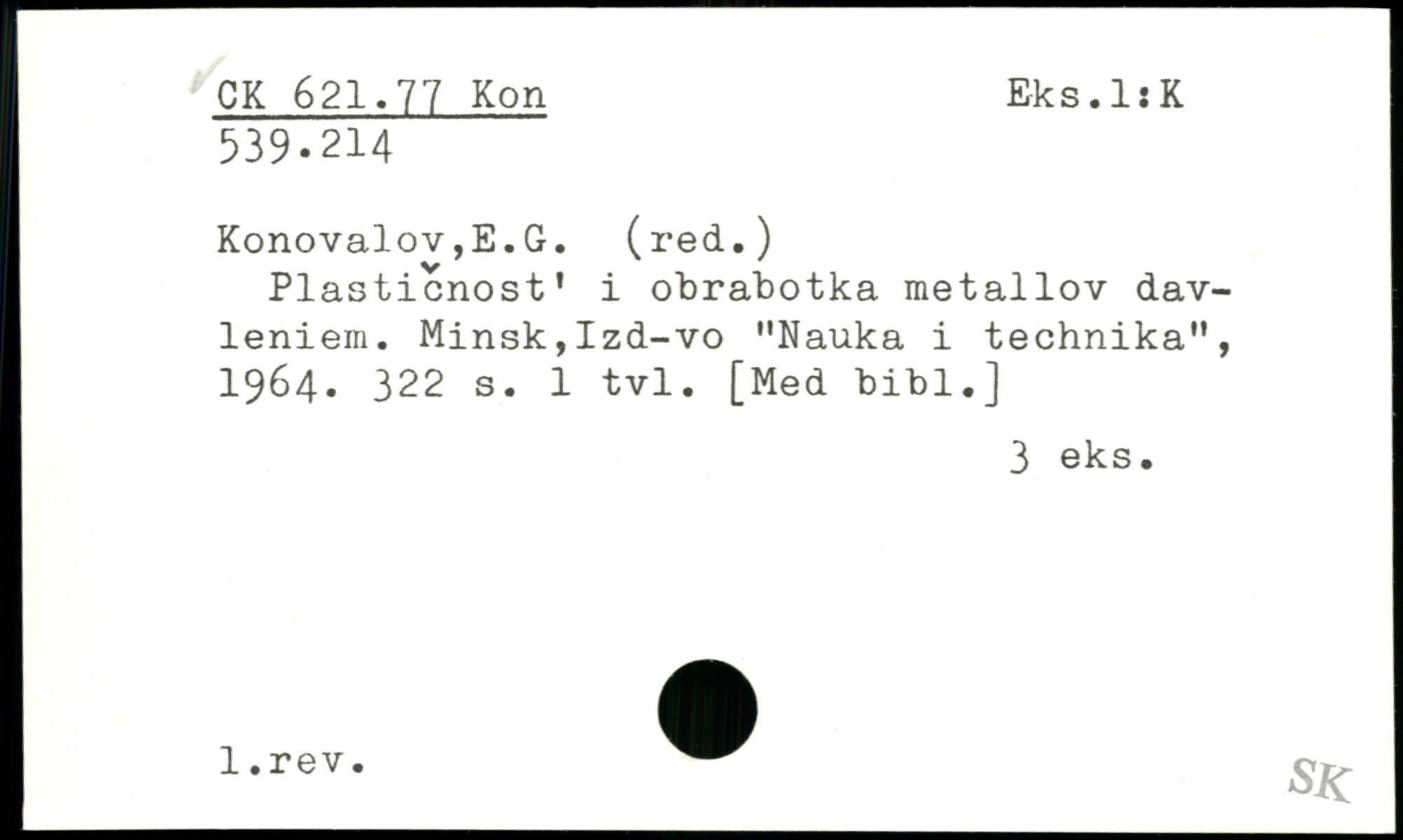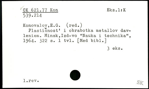 Plasticnost. i obrabotka metallov dav-leniem. Minsk,Izd-vo "Nauka i technika", 1964.
