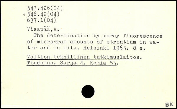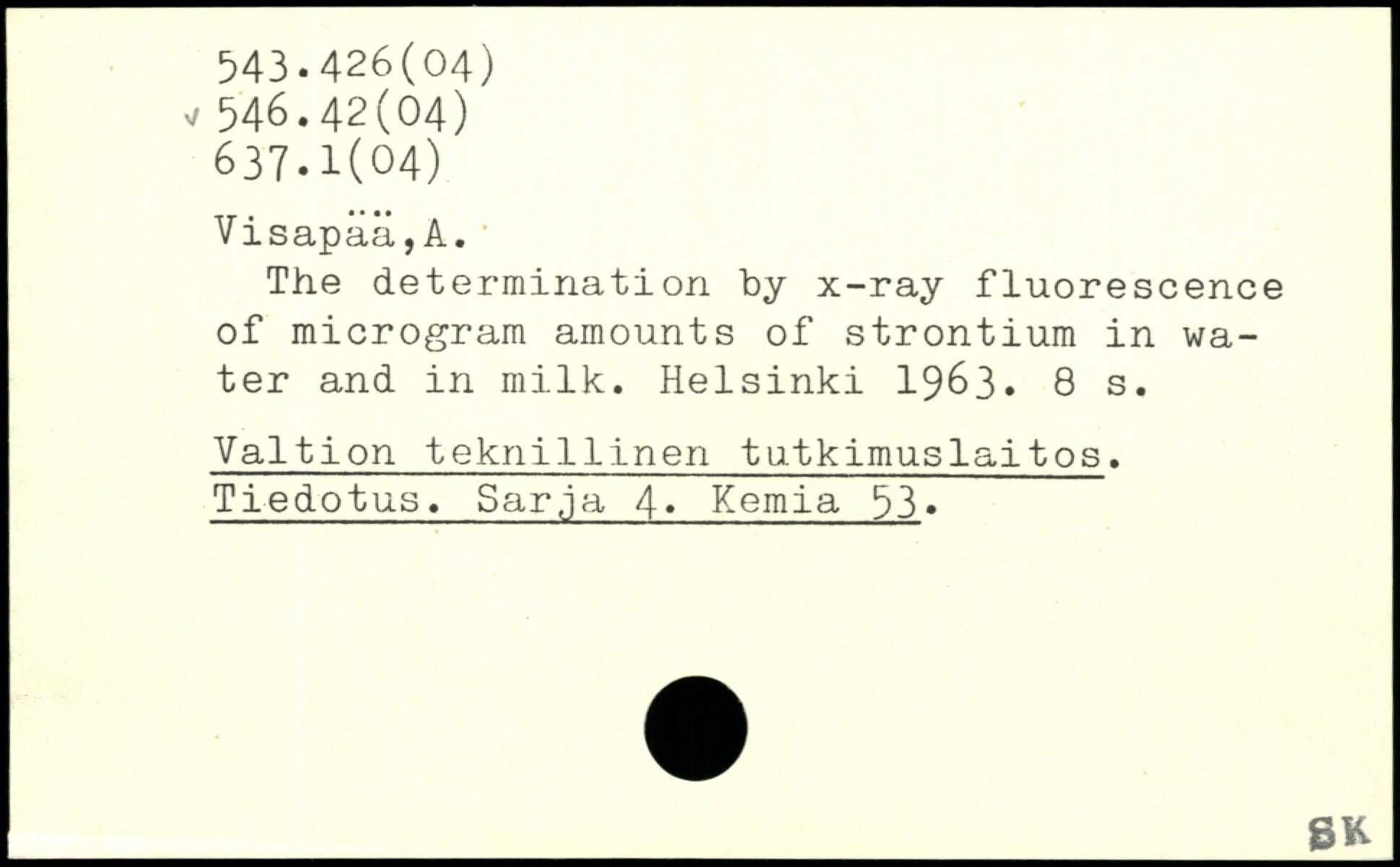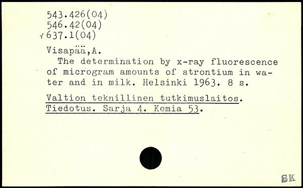 The determination by x-ray fluorescence of microgram ainounts of strontium in wa-ter and in milk.