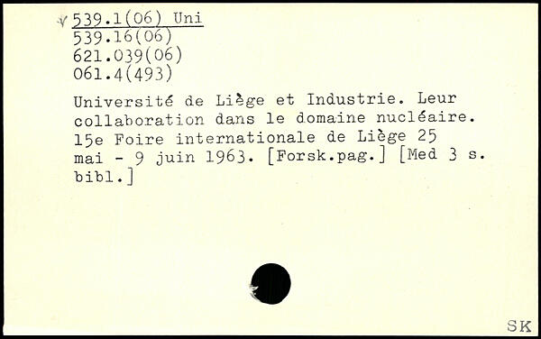 Université de Li^ge et Industrie. Leur collaboration dans le domaine nucléaire, l^e Foire internationale de Liege 25 mai - 9 juin 1963.