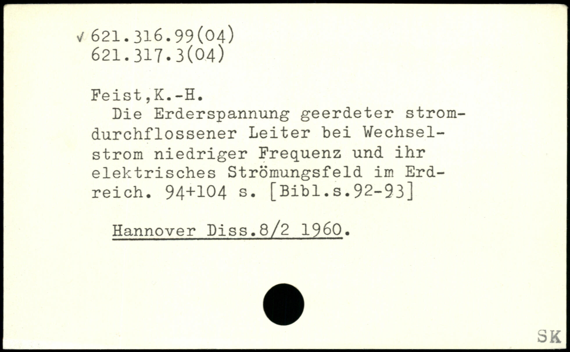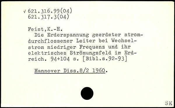 Die Erderspannung geerdeter stromdurchflossener Leiter bei Wechselstrom niedriger Frequenz und ihr elektrisches Strömungsfeld im Erdreich.