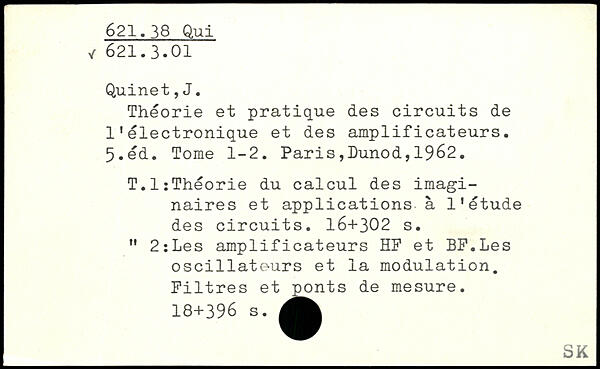Théorie et pratique des circuits de l'électronique et des amplificateurs. 5.éd. Tome 1-2.