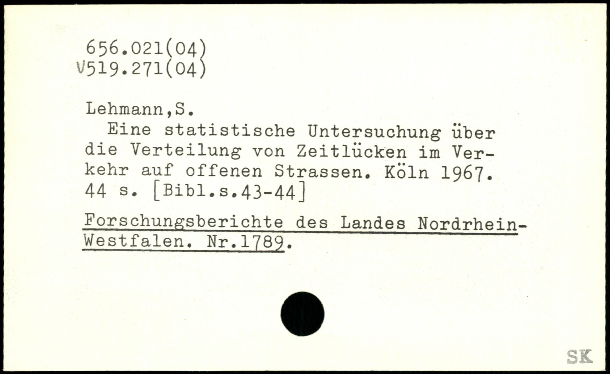 Eine statistische Untersuchung über die Verteilung von Zeitlücken im Verkehr auf offenen Strassen.
