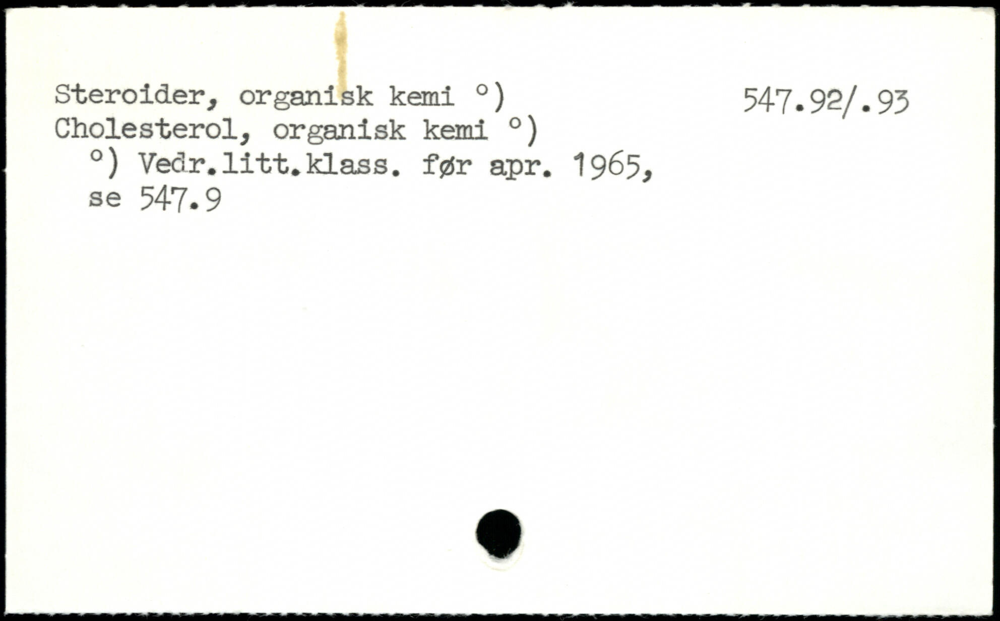Steroider, organisk kemi .) 547.92/.93 Cholesterol, organisk kemi .) .) Vedr.litt.klans, før apr. 1965, se 547.9