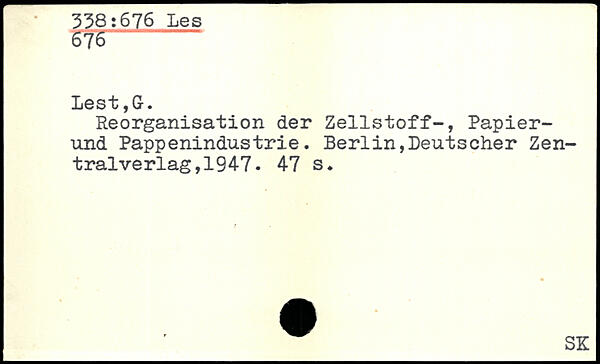 Reorganisation der Zellstoff-, Papier-und Pappenindustrie. Berlin,Deutscher Zentral verlag, 19 47.
