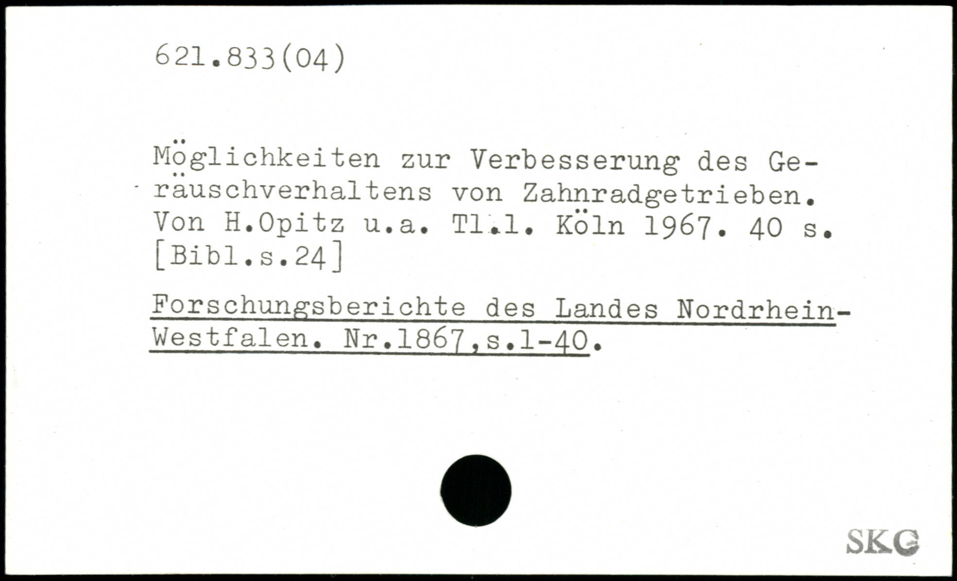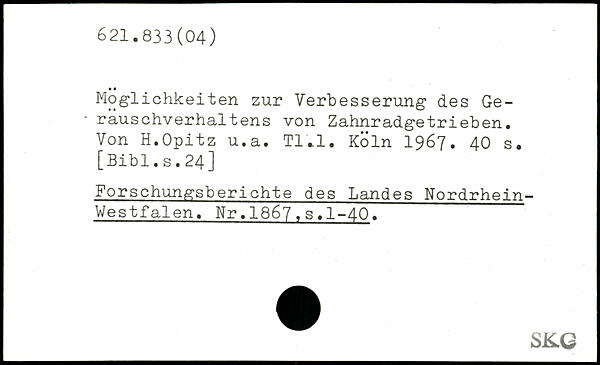 Möglichkeiten zur Verbesserung des Ge-- rauschverhaltens von Zahnradgetrieben. Von H.Opitz u.a. Tl.l.