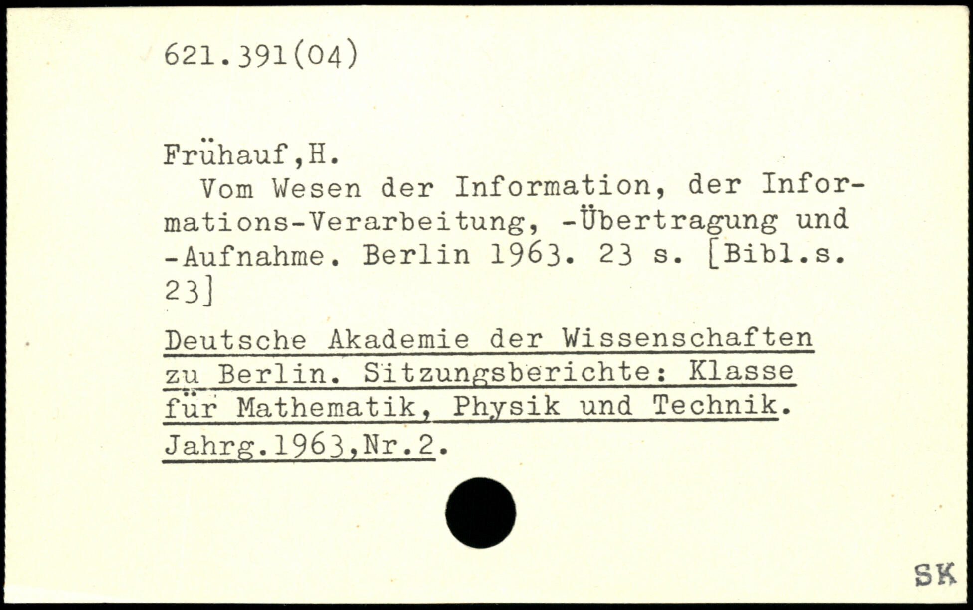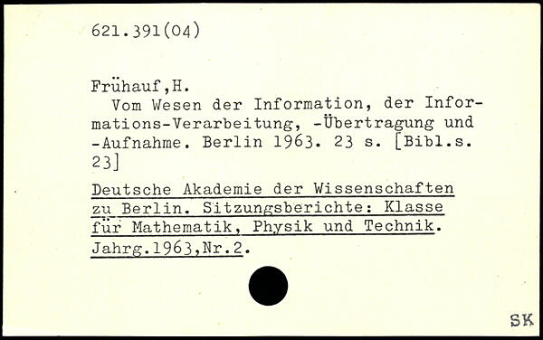 Vom Wesen der Information, der Informations-Verarbeitung, -Übertragung und -Aufnahme.