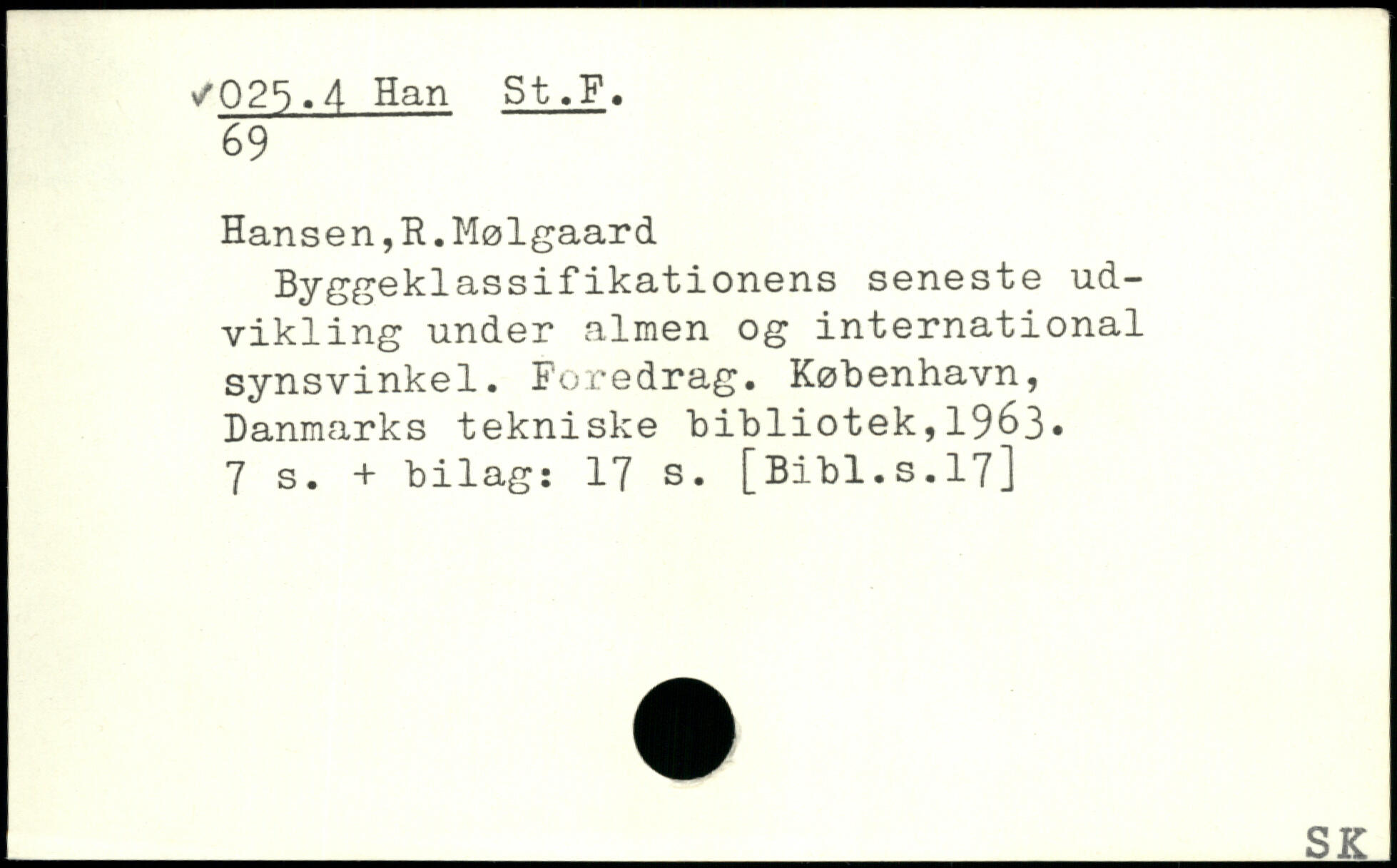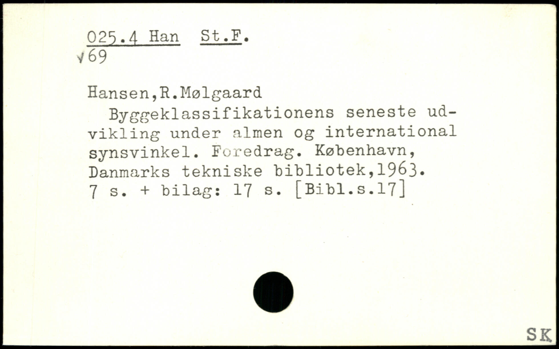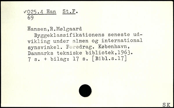 Hansen,R.Mølgaard Byggeklassifikationens seneste udvikling under almen og international synsvinkel. Foredrag.