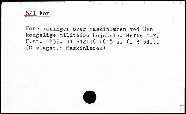 Forelæsninger over rnaskinlæren ved Den kongelige militaire højskole. Hefte 1-3. U.st. 1833. H