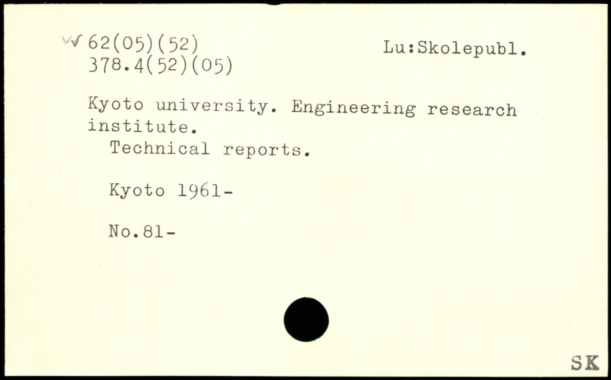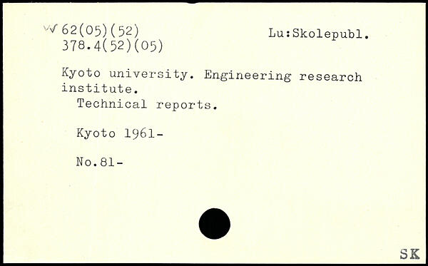 Kyoto university. Engineering research institute. Technical reports. Kyoto 1961-