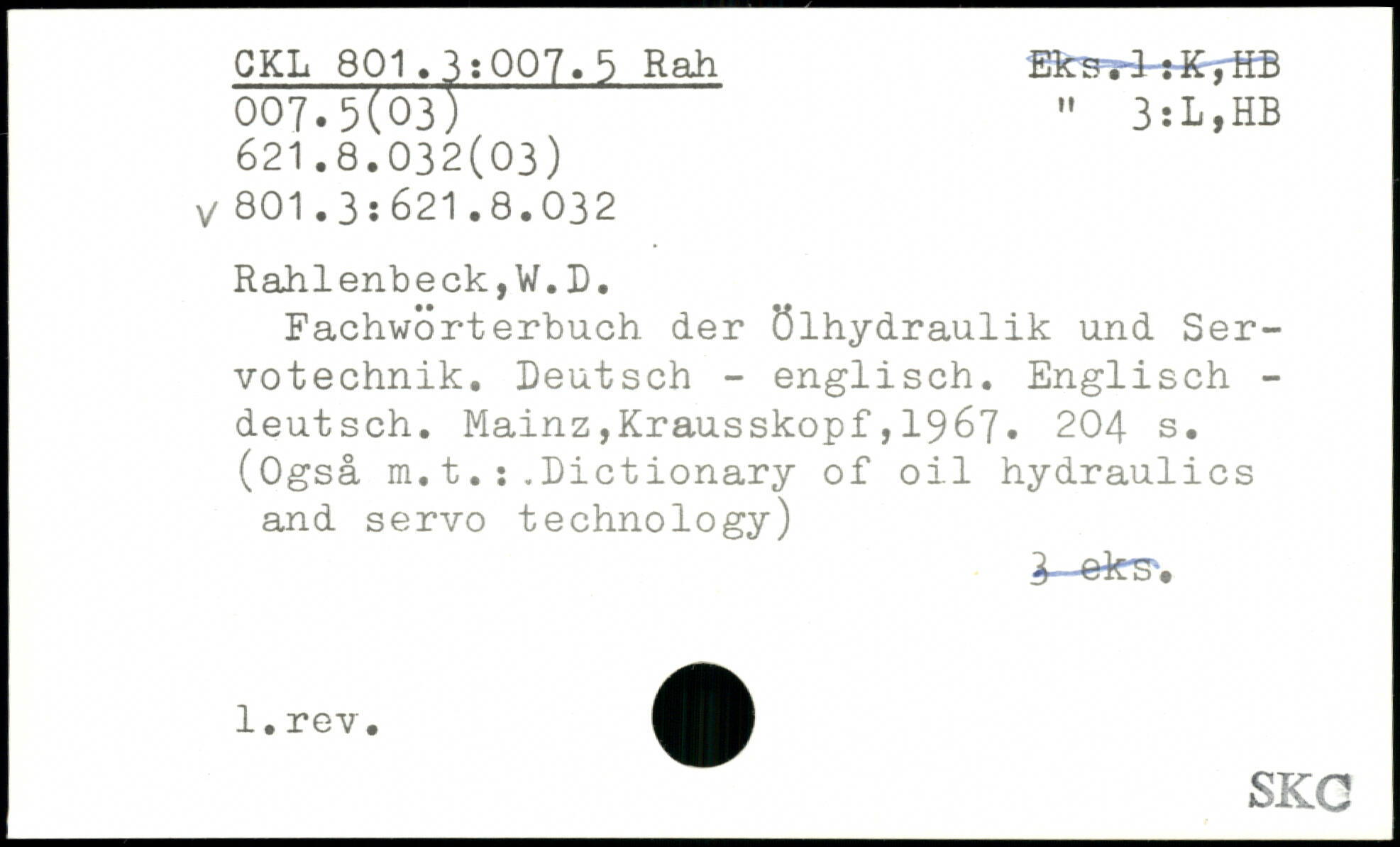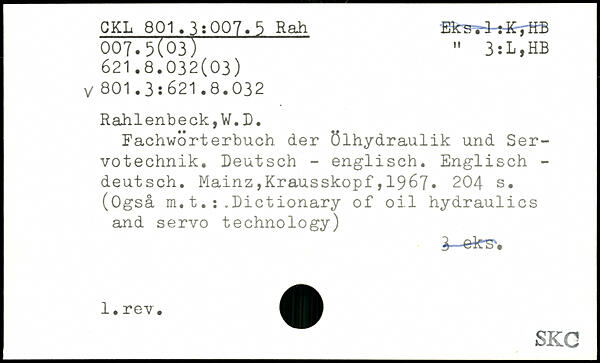 Fachwörterbuch der Ölhydraulik und Ser-votechnik. Deutsch - englisch. Englisch -deutsch.