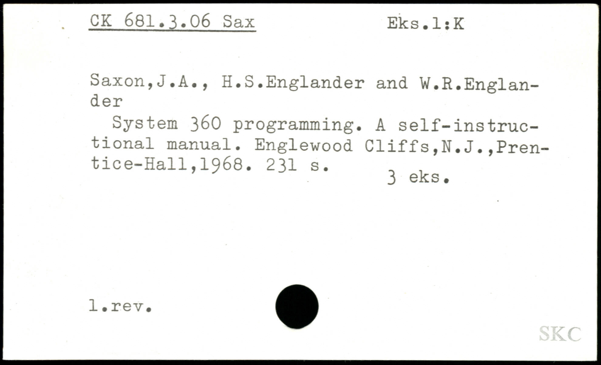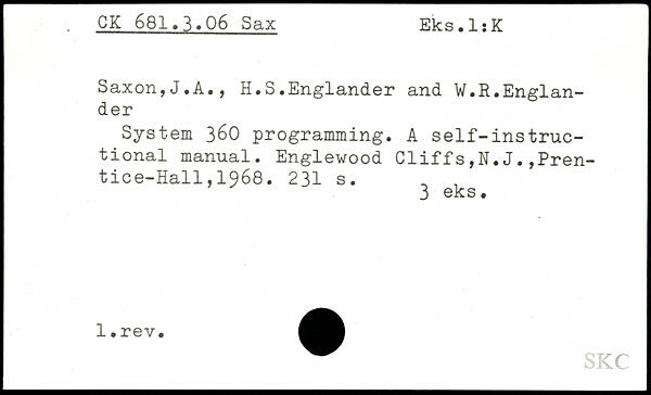 Forfatter: J.A. Saxon, H.S. Englander, V.R. Englander