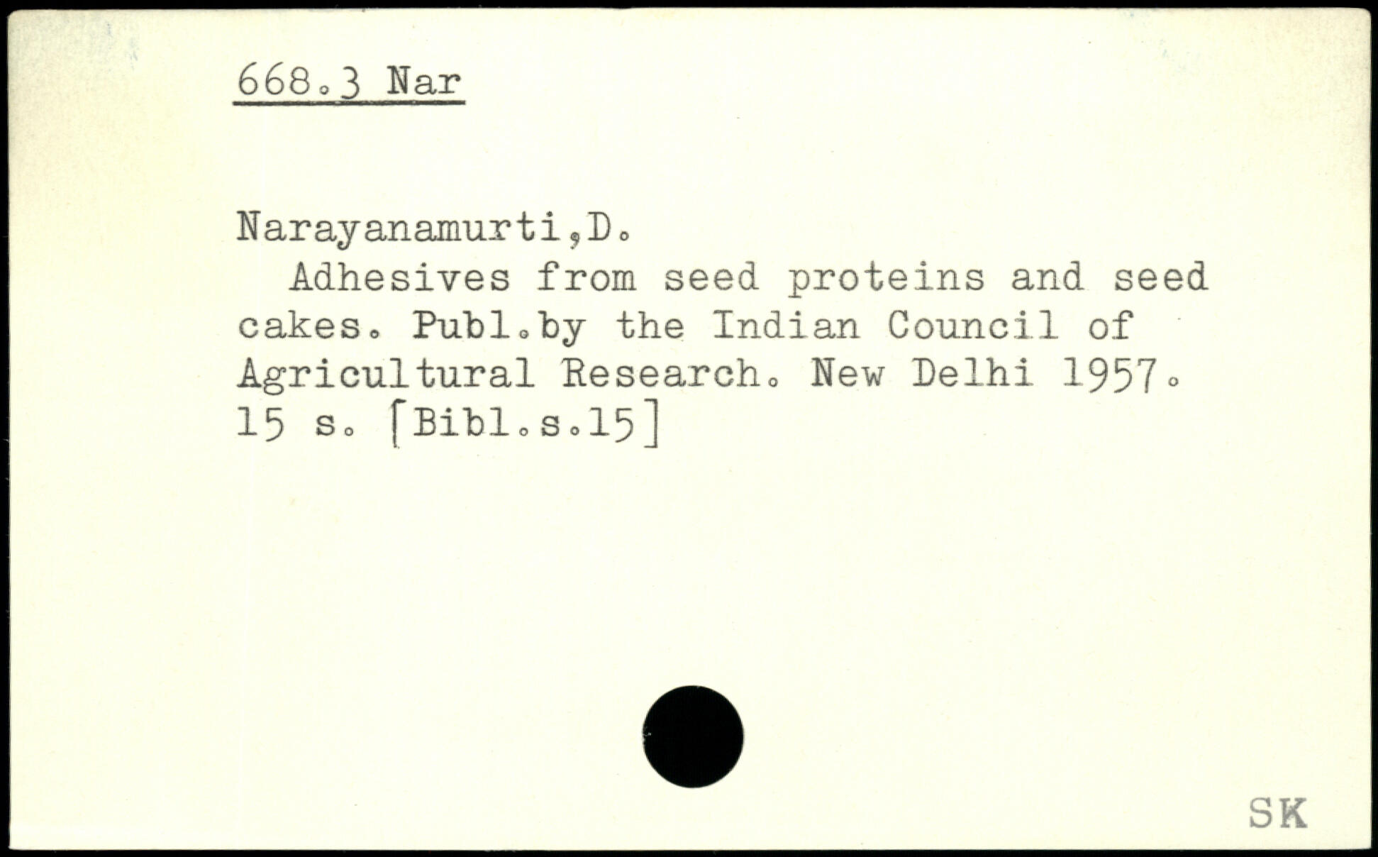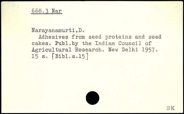 Adhesives from seed proteins and seed cakes. Pubic by the Indian Council of Agricultural Researcho New Delhi 1957.
