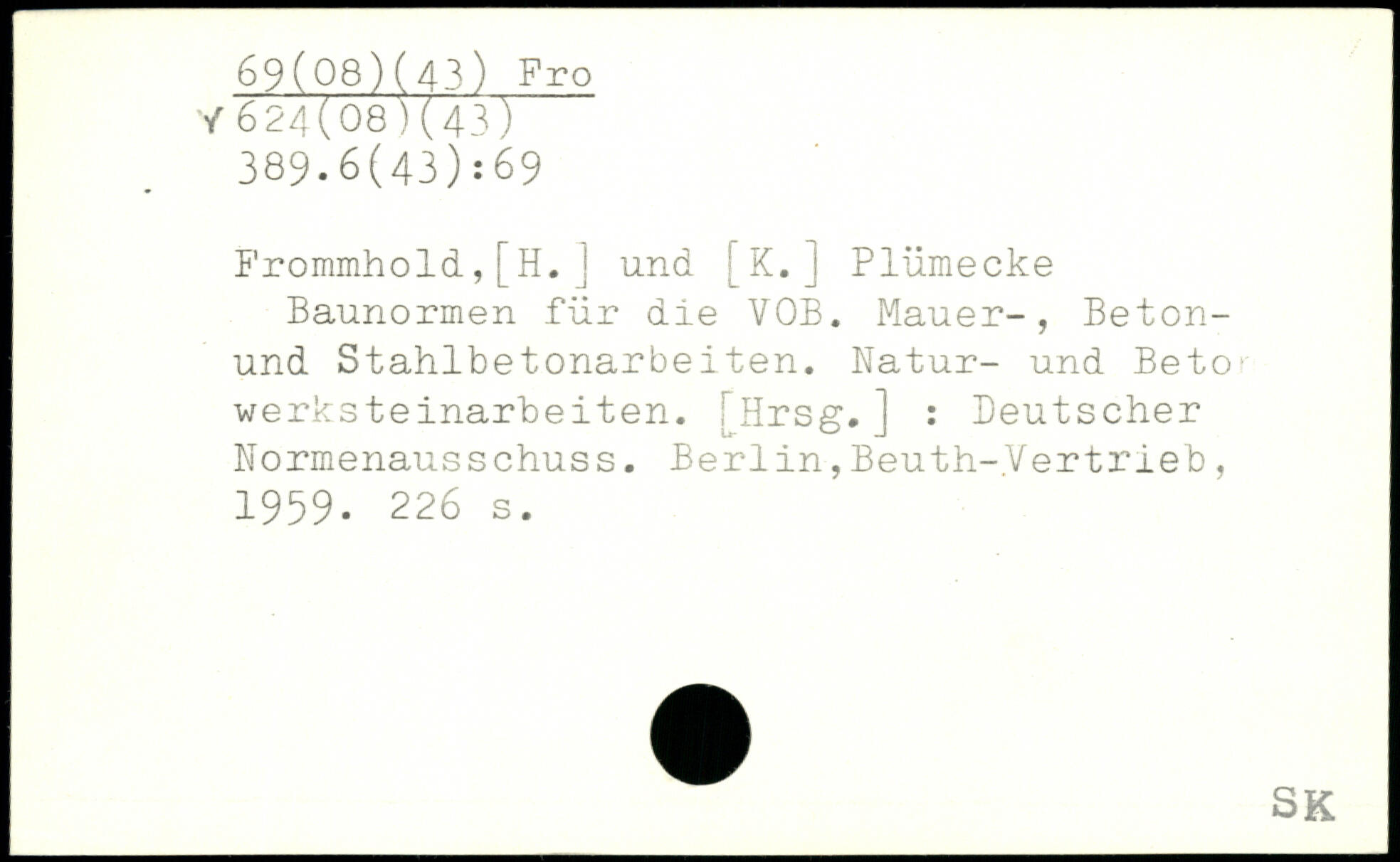 Frommhold,[H. j und [K.] Plümecke Baunormen für die VOB. Mauer-, Beton-und Stahlbetonarbeiten. Natur- und Beto-werksteinarbeiten. [Hrsg.] : Deutscher Normenausschuss.