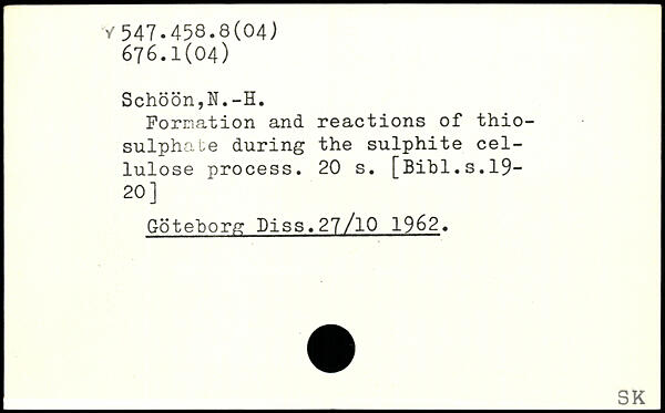Formation and reactions of thiosulphate during the sulphite cellulose process.