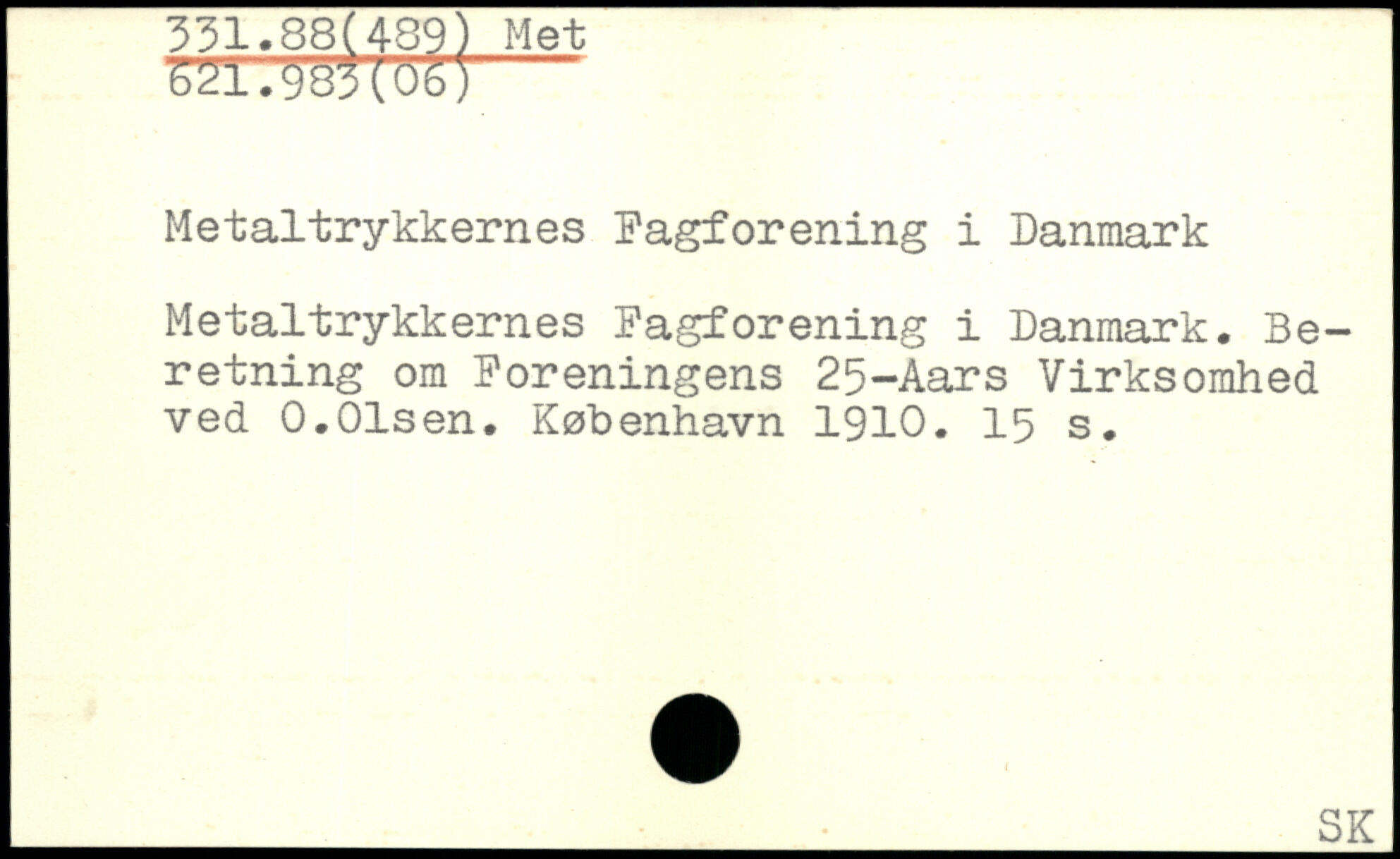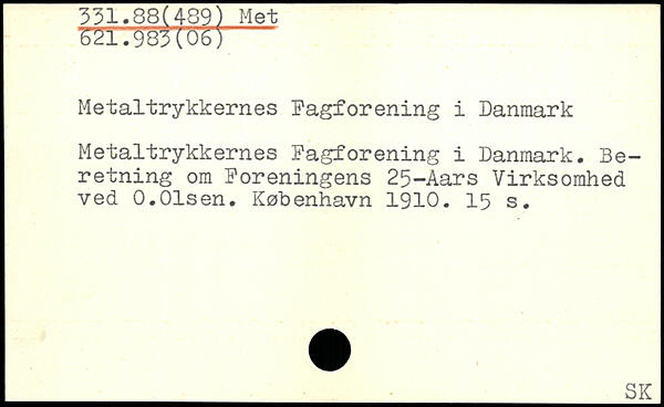 Metaltrykkernes Fagforening i Danmark Metaltrykkernes Fagforening i Danmark. Beretning om Foreningens 25-Åars Virksomhed ved 0.Olsen.