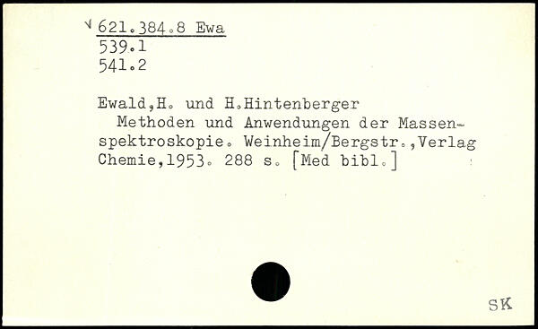 Methoden und Anwendungen der Massenspektroskopie o Weinheim/Bergstr,,Verlag Chemie,1953c