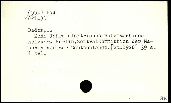 Zehn Jahre elektrische Setzmaschinen-heizung. Berlin,Zentralkommission der Maschinensetzer Deutschlands,[ca.1928]