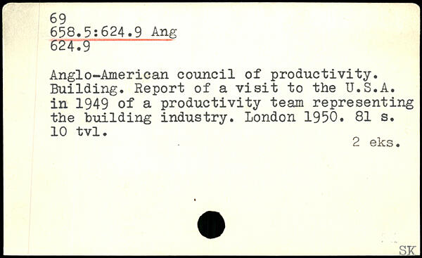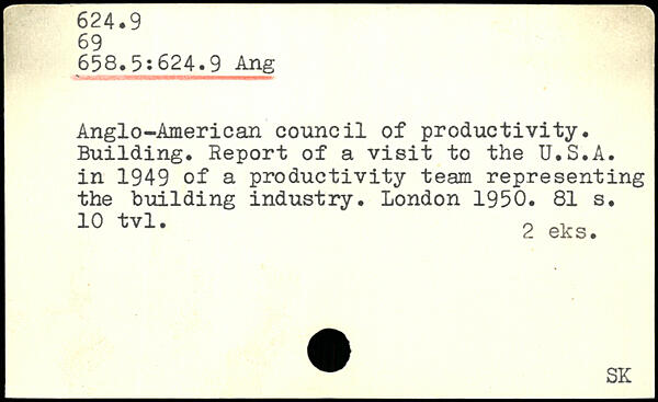 Anglo-American council of productivity. Building. Report of a visit to the U.S.A. in 1949 of a productivity team representing the building industry.