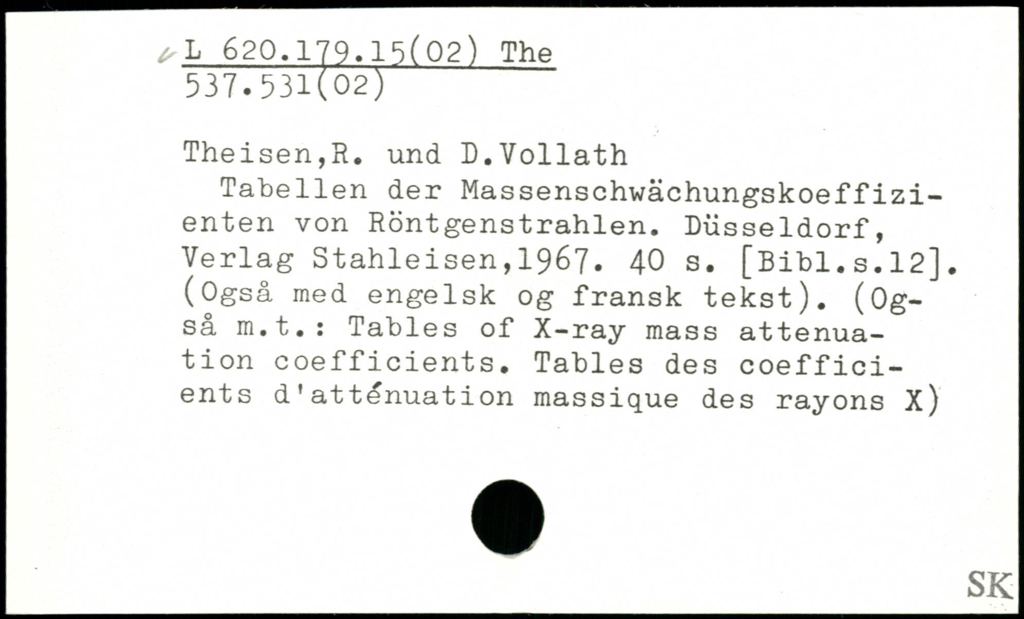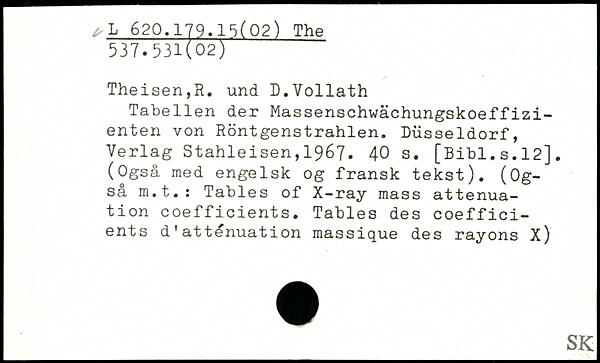 Tabellen der Massenschwächungskoeffizi-enten von Röntgenstrahlen.