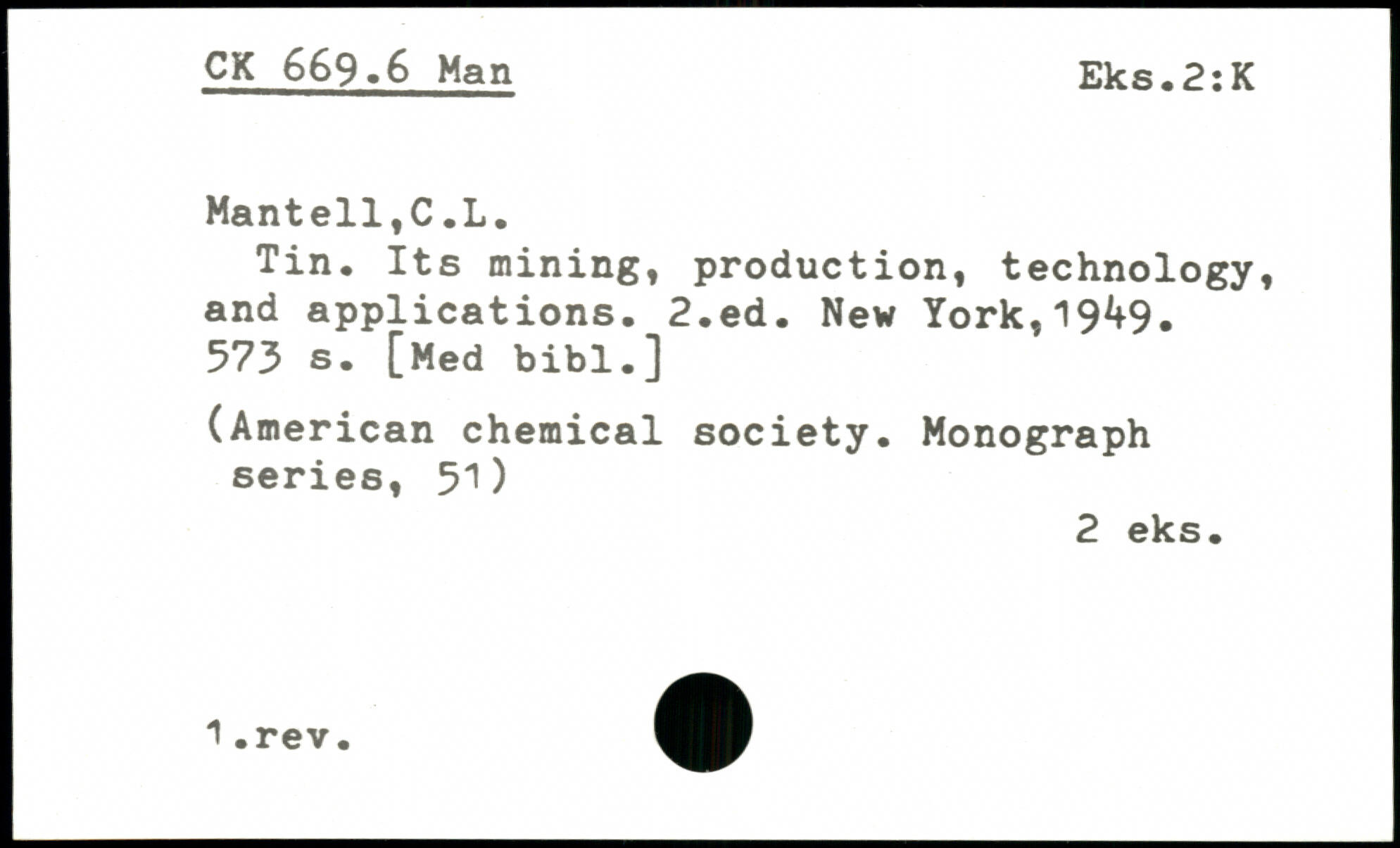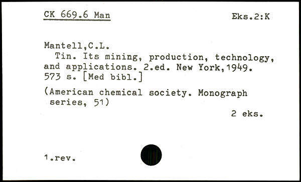 Tin, Its mining, production, technology, and applications. 2,ed. New York,19^9.