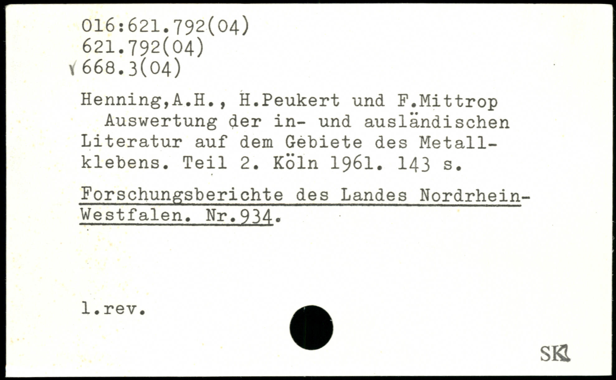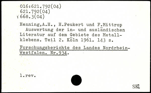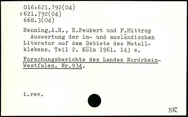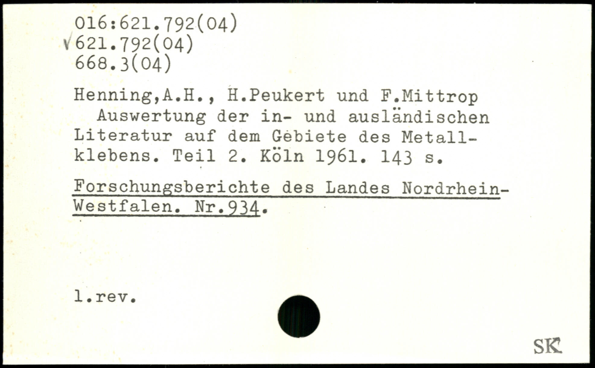 Henning,A.H. , H.Peukert und F.Mittrop Auswertung der in- und ausländischen Literatur auf dem Gebiete des Metallklebens. Teil 2.