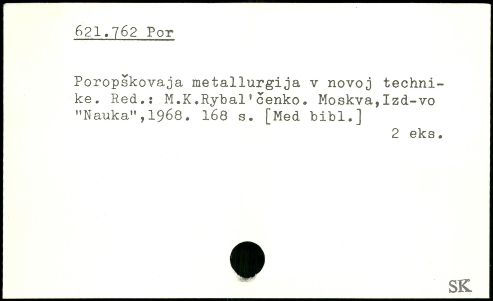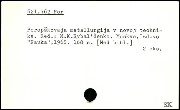 Poropskovaja me tallurgija v novoj techni-ke. Red.: M.K.Rybal.cenko. Moskva,Izd-vo "Nauka",1968. I