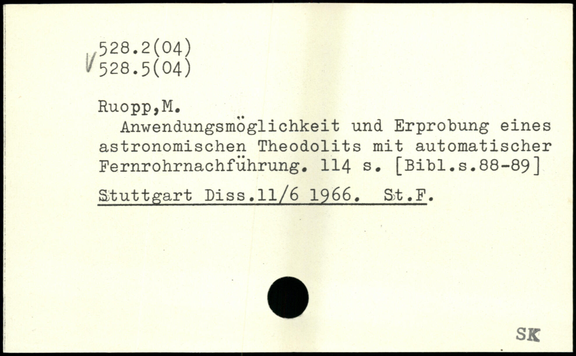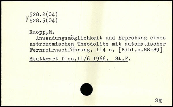 Anwendungsmoglichkeit und Erprobung eines astronomischen Theodolits mit automatischer Pernrohrnachführung.