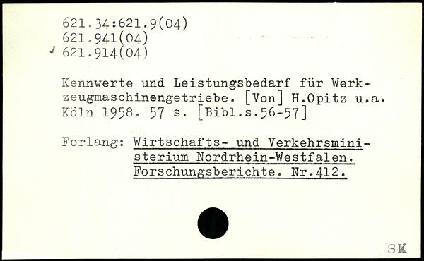 Kennwerte und Leistungsbedarf für Werk-zeugmaschinengetriebe. [Von] H.Opitz u.a.