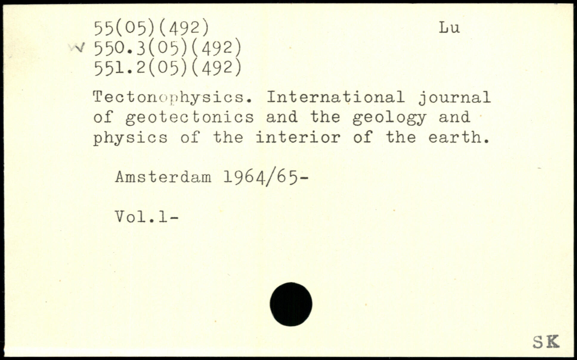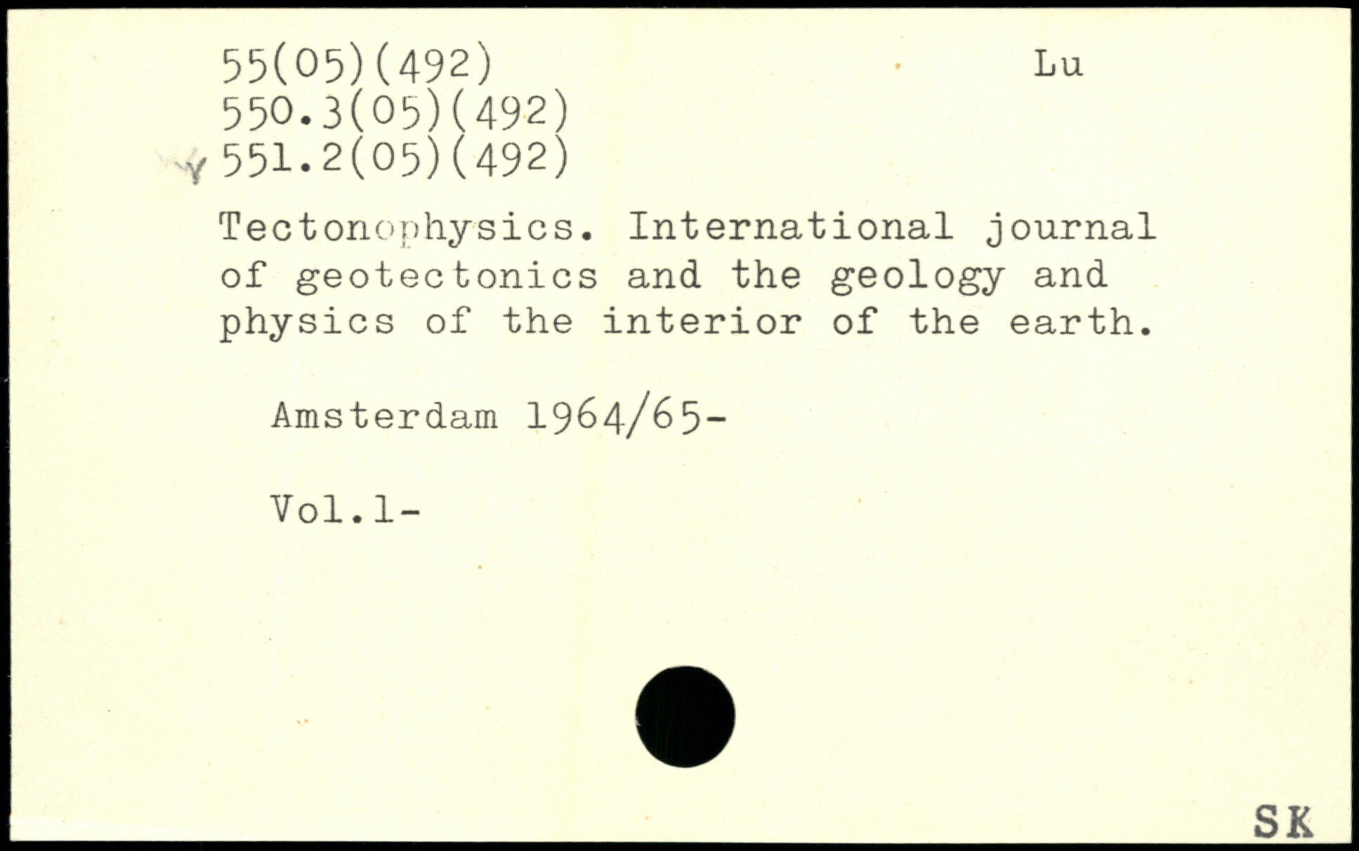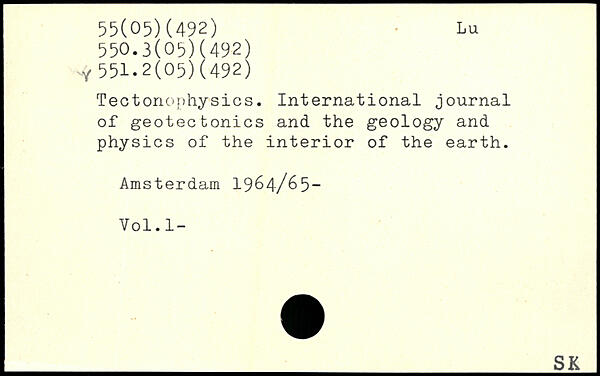 Tectonophysics. International journal of geotectonics and the geology and physics of the interior of the earth. Amsterdam 1964/65- Vol.l-