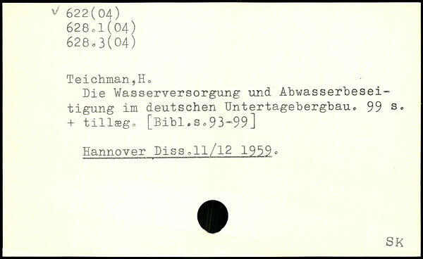 Die Wasserversorgung und Abwasserbesei-tigung im deutschen üntertagebergbau