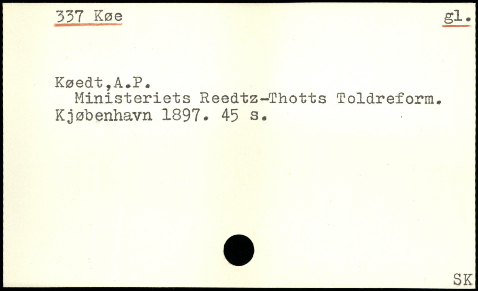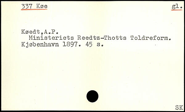 Ministeriets Reedtz-Thotts Toldreform. Kjøbenhavn 1897.
