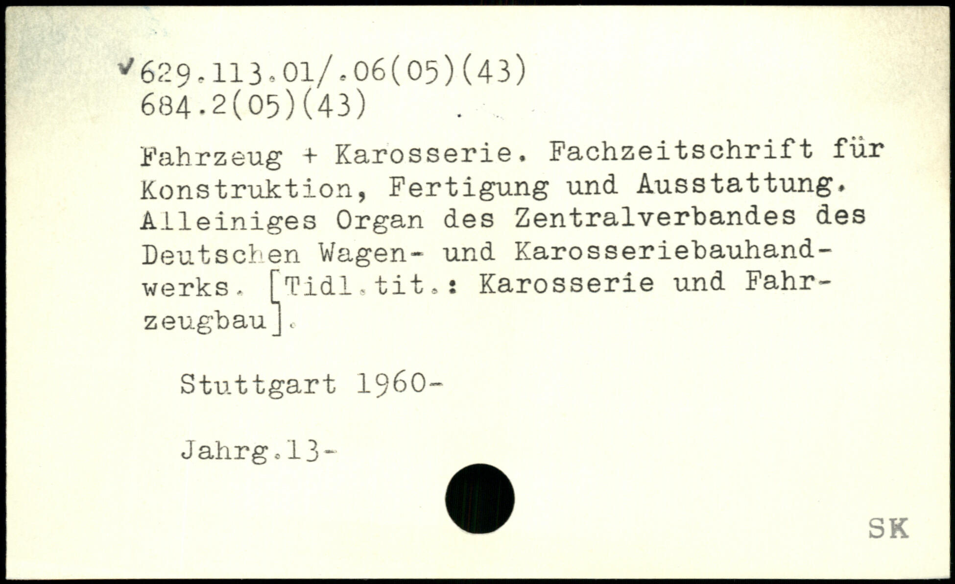 Fahrzeug + Karosserie. Fachzeitschrift fiir Konstruktion, Fertigung und Ausstattung. Alleiniges Organ des Zentralverbandes des Deutschen Wagen- und Karosseriebauhandwerks. [Tidl.tit.: Karosserie und Fahrzeugbau] c
