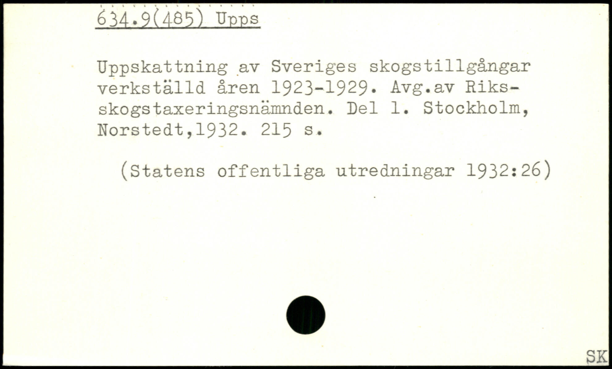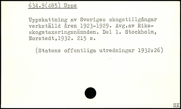 Uppskattning av Sveriges skogstillgångar verkställd åren 1923-1929. Avg.av Riks-skogstaxeringsnämnden. Del 1.