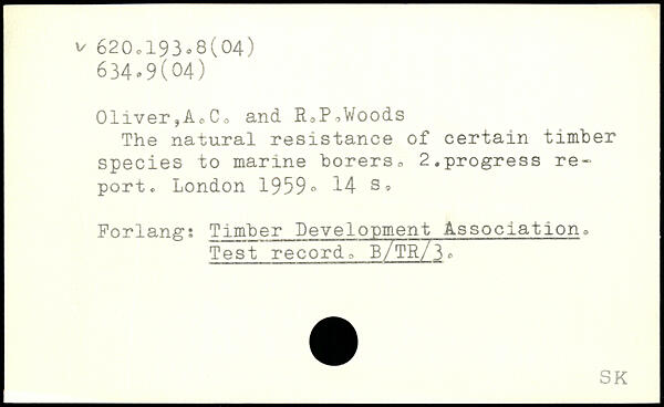01iver,AoCo and RoP^Woods The natural resistance of certain timber species to marine borers. 2.progress report.