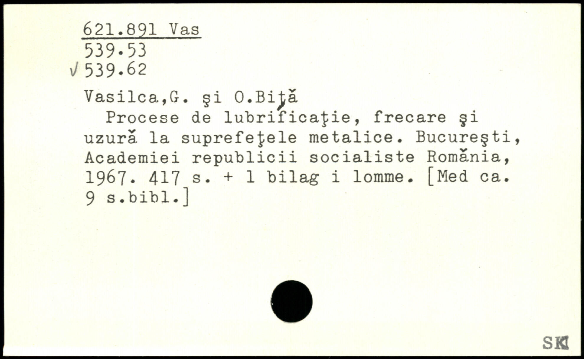 Vasilca,G. §i O.Bi^â Procese de lubrifica£ie, frecare §i uzura la suprefe^ele metalice. Bucure§ti, Academiei republicii socialiste România, 1967.