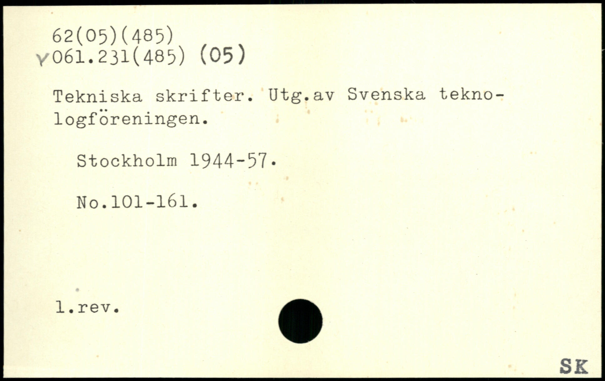 Tekniska skrifter. Utg.av Svenska tekno-logforeningen.