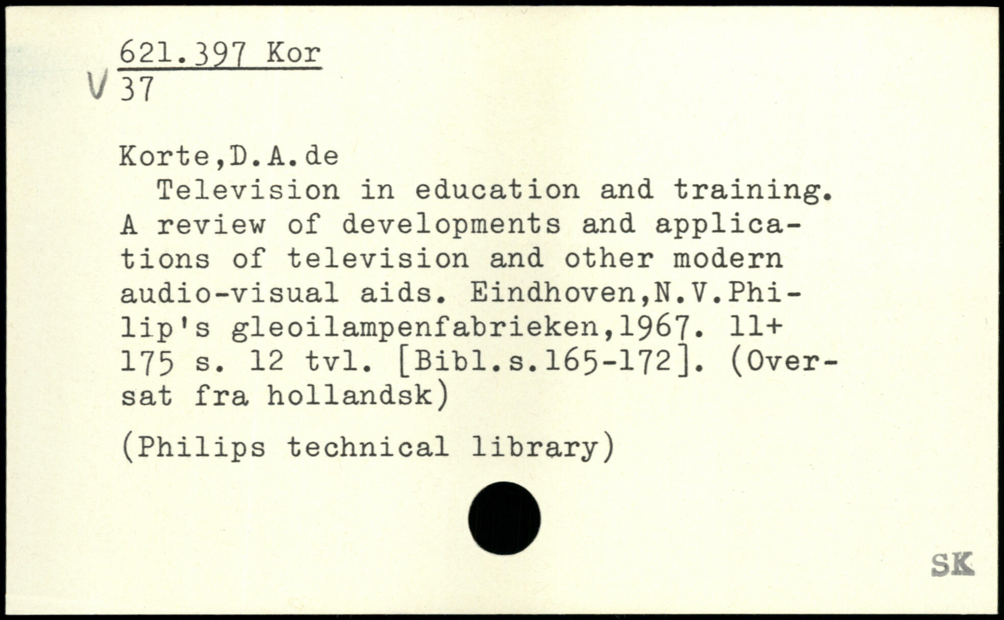 Television in education and training. A review of developments and applications of television and other modern audio-visual aids. Eindhoven,N.V.Philip's gleoilampenfahrieken,1967. 11+