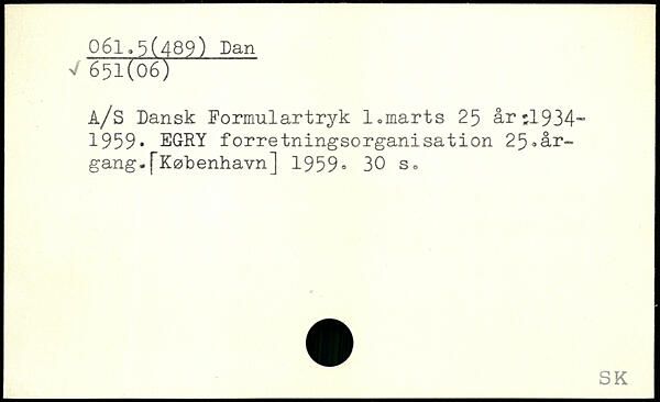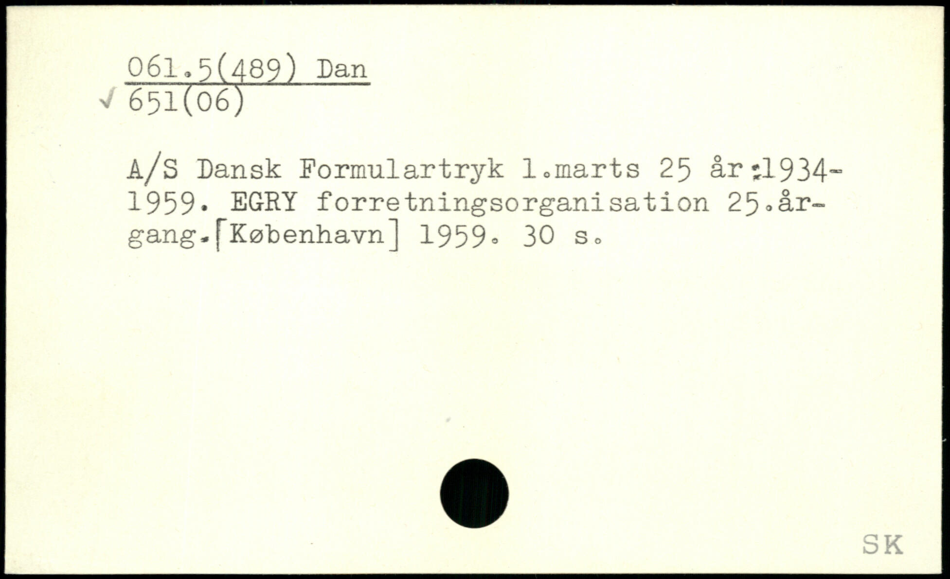 å/S Dansk Formulartryk 1,marts 25 år.1934— 1959- EGRY forretningsorganisation 25-årgang.