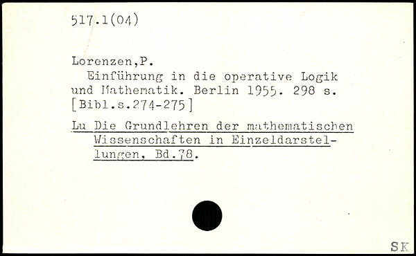 Einführung in die operative Logik und Mathematik.