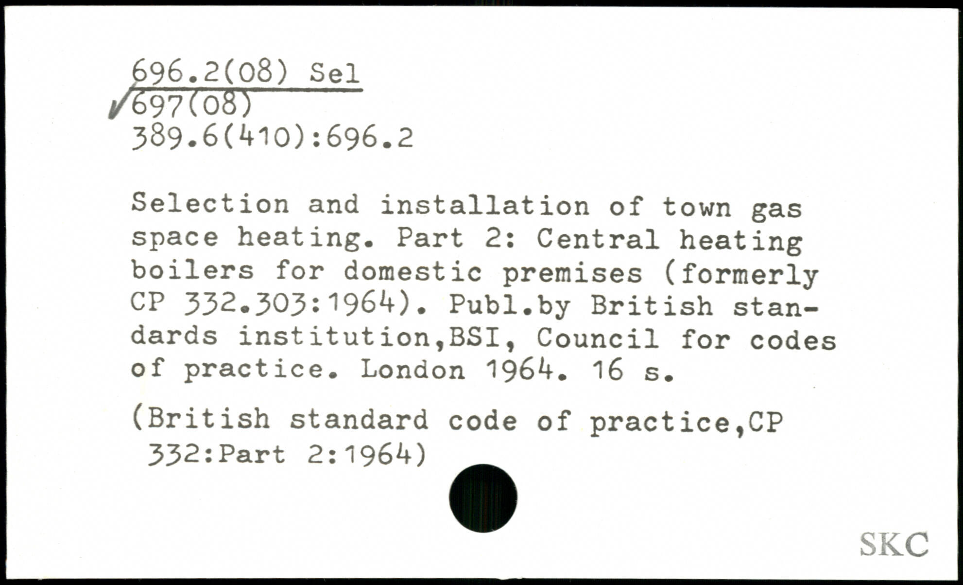 Selection and installation of town gas space heating. Part 2: Central heating boilers for domestic premises (formerly CP 332.303:1964).