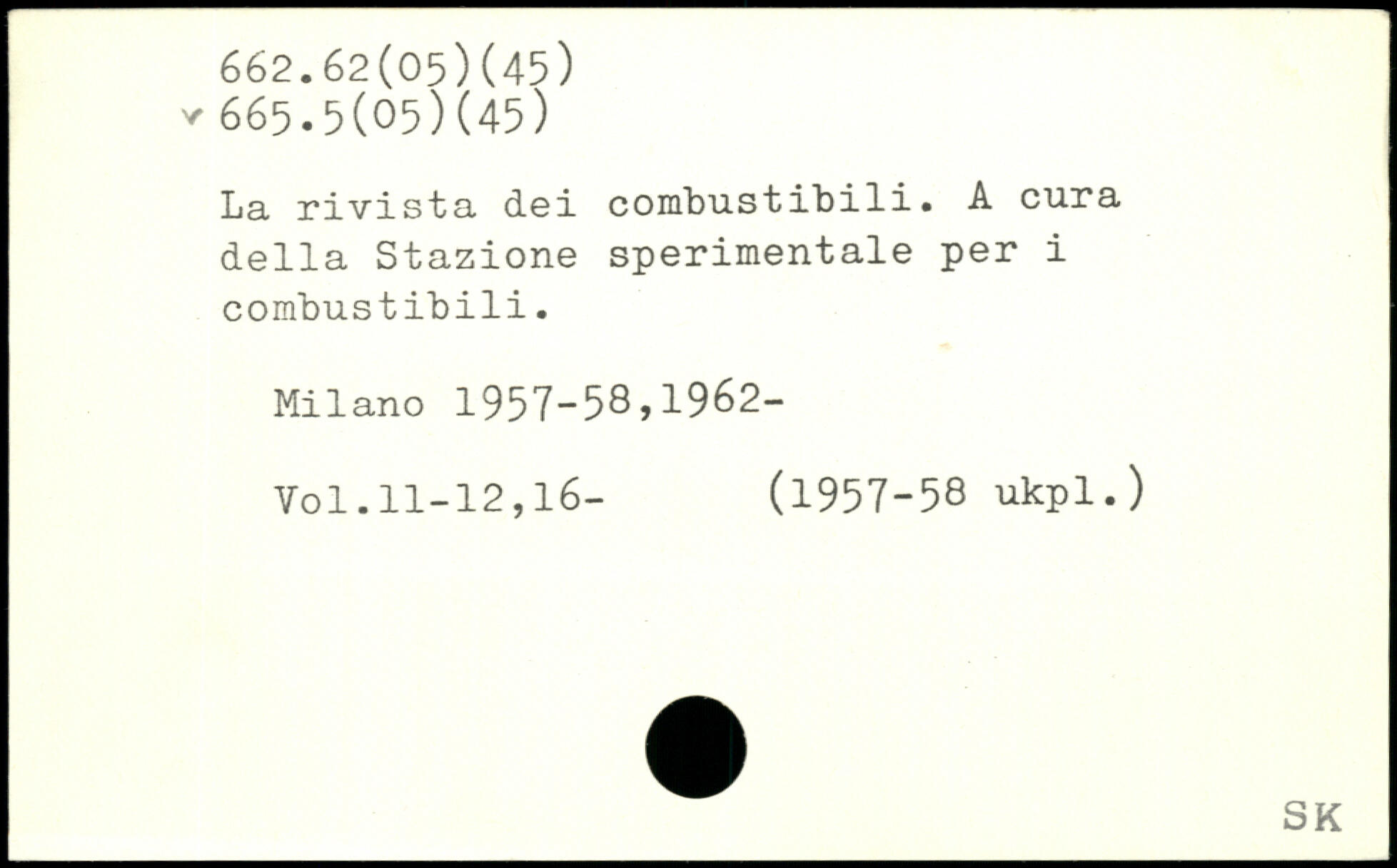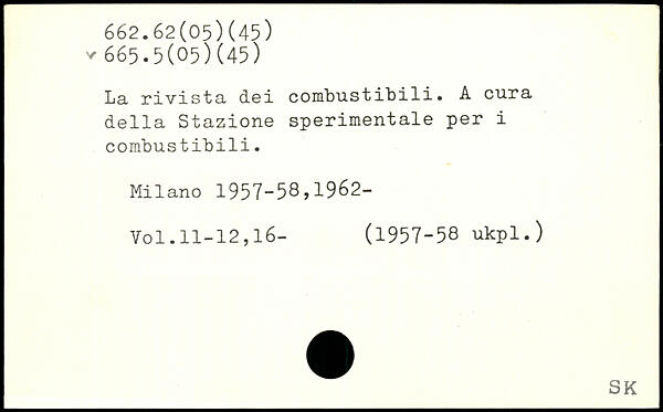 La rivista dei combustibili. A cura della Stazione sperimentale per i combustibili. Milano 1957-58,1962-