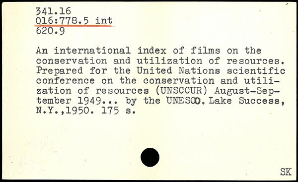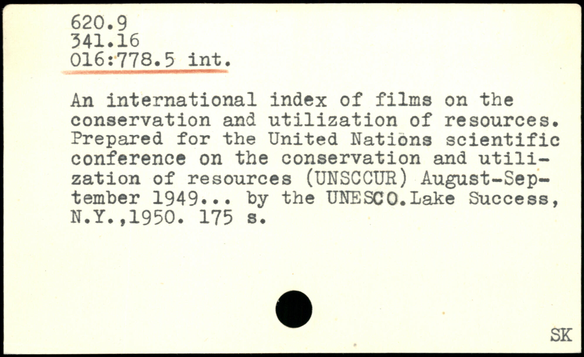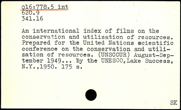 An international index of films on the conservation and utilization of resources. Prepared for the United Nations scientific conference on the conservation and utilization of resources (UNSCCUR) August-September 1949... by the UNESCO.