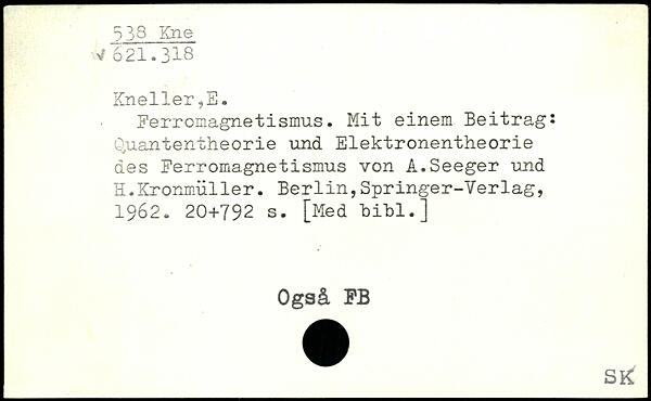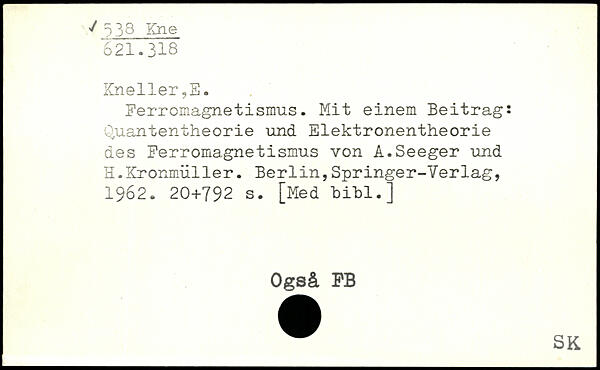 Ferromagnetismus. Mit einem Beitrag: Quantentheorie und Elektronentheorie des Ferromagnetismus von A.Seeger und H.Kronmüller.