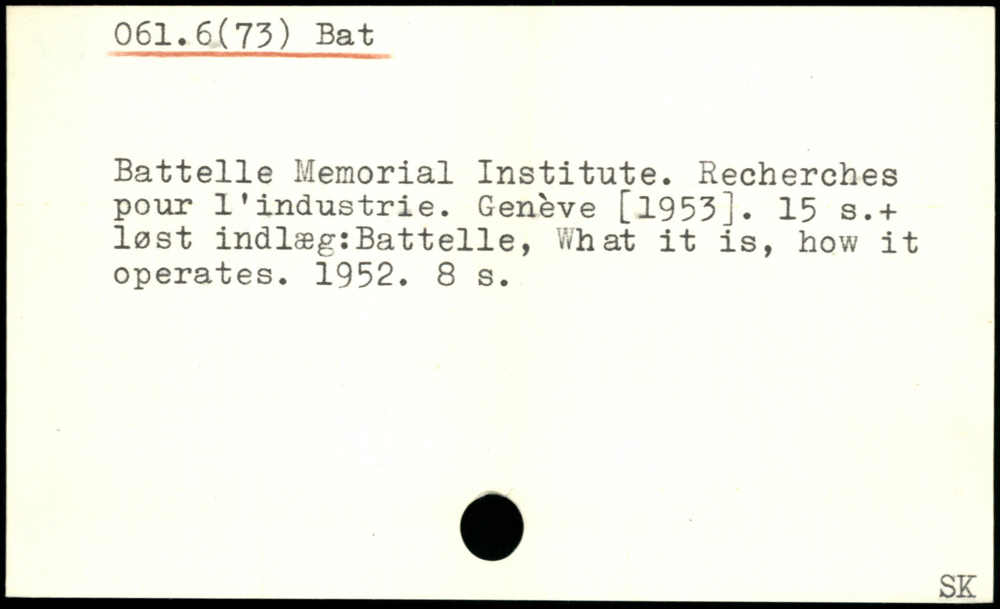 Battelle Memorial Institute. Recherches pour l'industrie. Genève [1953].